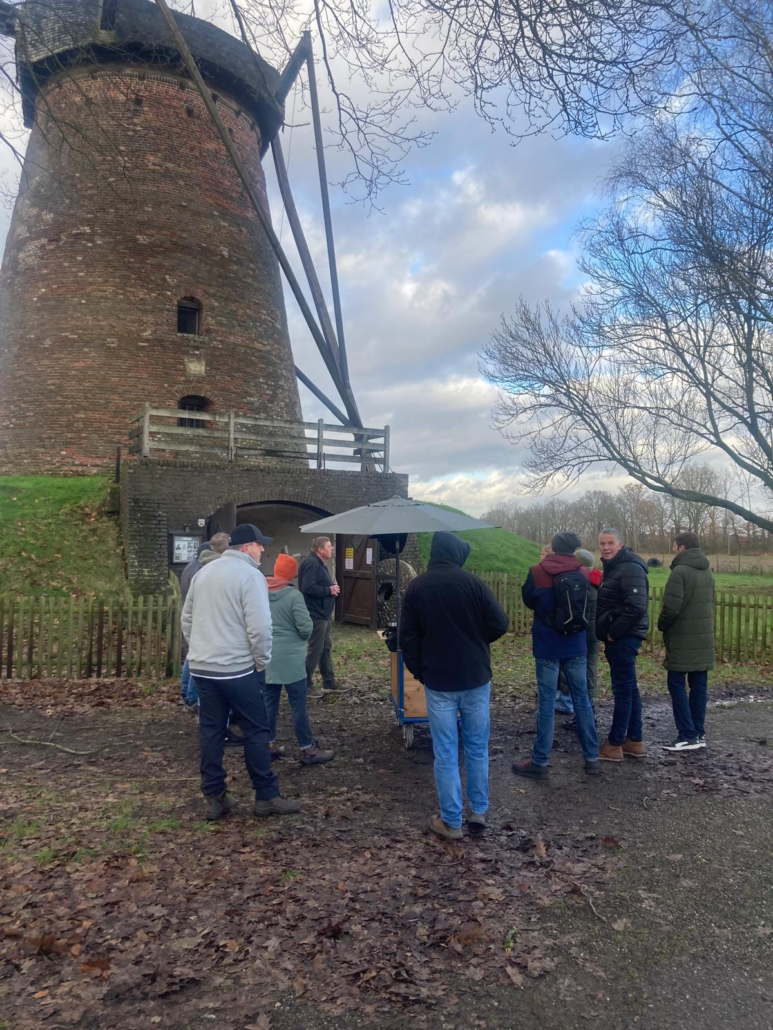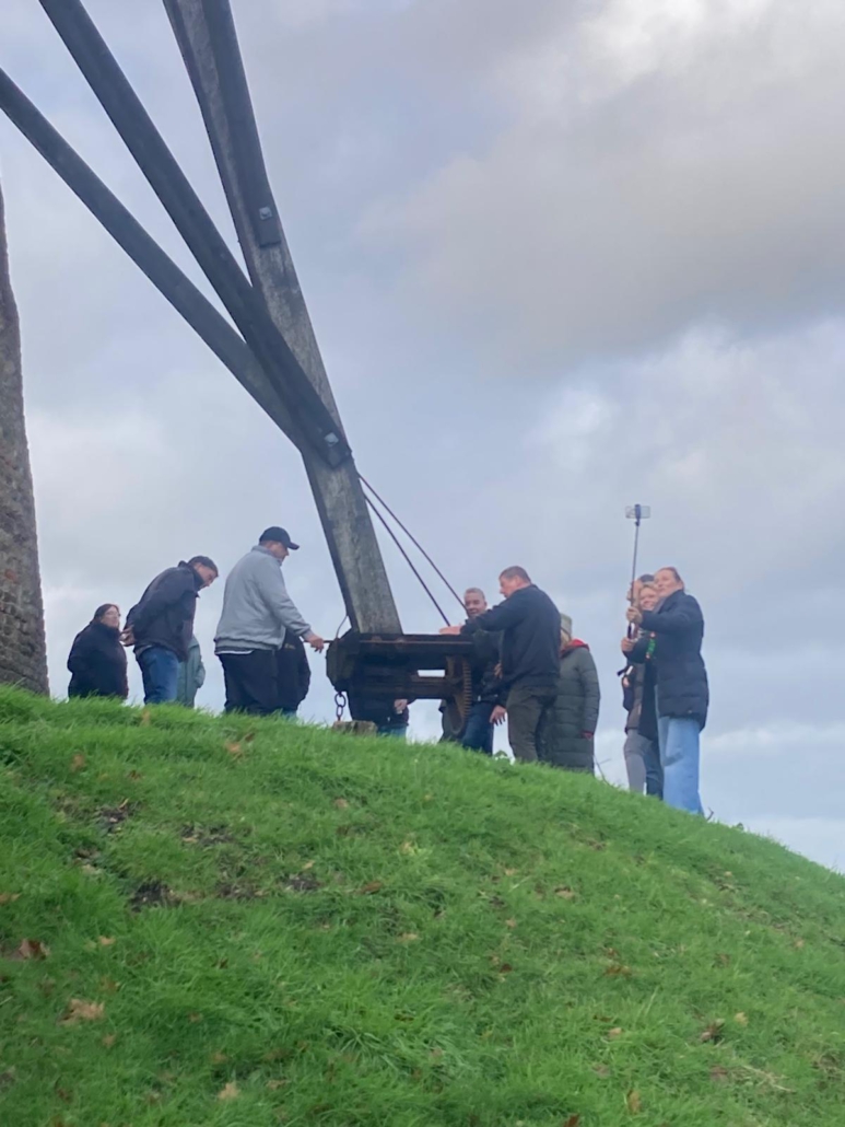 Die Führung wurde von Anton und Georg van Stegen gemacht und führte vom Mühlentunnel bis zur Turmhaube. Die Gruppe zeigte große Begeisterung an der alten Mühlentechnik.